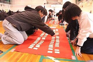 昨年度はあまりに句を覚えておらず試合にならなかったことを踏まえ、委員の人たちが2年生の廊下や教室、下足室にもあちこち貼って、みんなで覚えよう!と呼びかけてくれました。