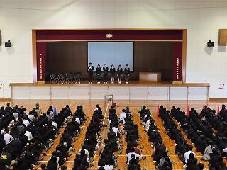 まず最初に令和7年度後期生徒自治会執行部より、挨拶がありました。