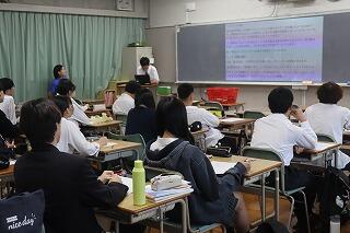 2年生は、「未来探究」の事業で、はじめからグループ単位での探究を行い、今日は中間発表会を行っていました。今年度も夏休み中に多くのグループが地域に出て、フィールドワークを行うなど、活発な探究学習が行われています。