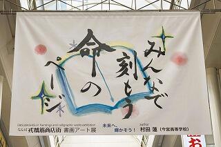 「みんなで刻もう命のページ」、「夢は逃げない」。どちらもメッセージ性の強いことばと画が印象的です。飾られた作品は、商店街を訪れる人々のこころを温めてくれたことでしょう。