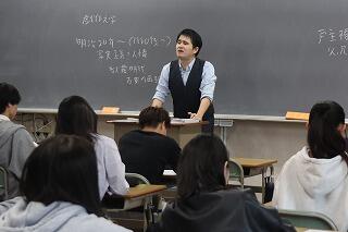 例えば、「文学史はいつの時代も鉄板! 『時代・ジャンル・作者・作品』は絶対‼」、「近代文学って何ですか? いつの時代から? 必ず時代を意識してくださいね。近代文学は明治20年頃から。西暦でいうと1880年頃からですが、どんなことが起きた時代ですか。1870年代に文明開化が起きていろいろな文化が入ってきて、例えば『胡坐鍋(あぐらなべ)』~牛鍋のこと~もそうですね。西洋文学もその一つ。西洋文学の特徴は写実であること~世の中のリアルに描くこと。ドラマってほとんど写実ですね。だから近代文学も写実的。また、坪内逍遥は『写実とは人情である』と小説神髄の中で述べています。二葉亭四迷が言文一致を始めたことや、尾崎紅葉と幸田露伴は必ずセットで覚えること、なぜなら露伴は『五重塔』で見られるように人の明るいところを描いたのに対して、紅葉は『金色夜叉』で認められるように、人の醜いところを描いたという対比が明確で、...、樋口一葉の代表作『たけくらべ』の他次々と文学史に残る作品を書いた『奇跡の14か月』、...、森鴎外の『舞姫』も、あれは豊太郎が...」と、先生の近代文学史への深い造詣から発せられる言葉は留まることがありません。生徒達は先生の言葉に引き込まれながらも、自分の頭でしっかり考えながらメモを取っていました。