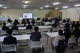 公開授業後、場所を新自彊会館に移して研究協議が行われました。見学してくださった他の高校や中学校の先生方の多くのご出席をいただき、永井先生から本時についての説明があり、質疑応答や意見交換がなされました。Jaivesさんに授業に入ってもらうまでに、永井先生は細やかな準備を時間をかけてたくさんされたことを知りました。結びに、大阪府教育センター指導主事の城台様から指導助言をいただきました。有難うございました。