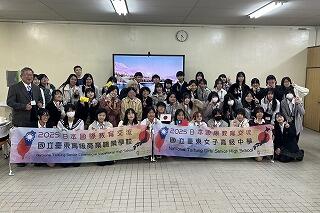 13日(木)午前、台湾から姉妹校の国立台東女子高級中学の生徒27名と校長先生を含む3名の先生が本校に来られました。一昨年度以来2年ぶりの来校です。教頭先生から写真とともに報告をいただきましたので掲載します。 はじめに多目的ホールで歓迎のセレモニーを行い、午後は1年球技大会に参加しました。 放課後は食堂で交流会を行いました。夕刻、一行はとても満足してホテルへ向かわれました。 こうして2...