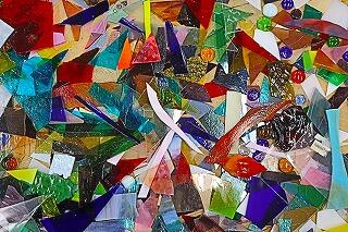 まずはじめに設計図を描きます。自分が作りたい作品のイメージを紙面上に具現化し、配色等を考えます。プランが決まったら、教室の戸棚の引き出しにある様々な色のガラス板からイメージに合うものを選んで必要なサイズをガラス切りで切り分けます。また、これまでの授業でたくさん溜まったステンドグラスの切れっ端から使えそうなものを選ぶことができれば、ガラス切りで切る作業が短縮でき、また、節約もできていいです。
