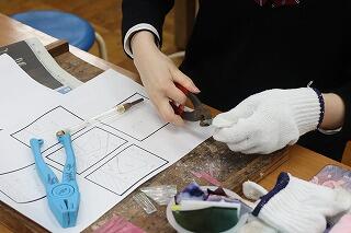 生徒達は皆とても熱心で、ちょっと休憩することもなく、ひたすら制作し続けていました。聞くと、中には切るのがとても難しいガラスもあるようで、また、初めてはんだ付けをする生徒もいるようですが、誰一人諦めることなく思い通りの作品を制作しようとしている様子を見て、本当に球が下がる思いになりました。どんな小箱ができるか楽しみです。有難うございました。