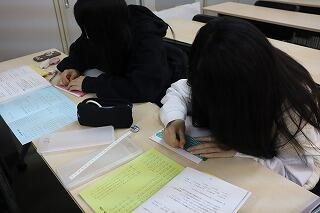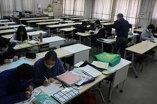 今日は1年「書道Ⅰ」、1年「現代の国語」、2,3年「点字入門」、2年「発展英語構文・語法」の授業を見学しました。「書道Ⅰ」では漢字仮名交じりの書の創作、「現代の国語」では評論の批判的な読み方の学習、「発展英語構文・語法」では名詞(句)を後ろから説明するカタマリを見抜く力の育成、とそれぞれ学びの目標をもって熱心に取り組んでいました。