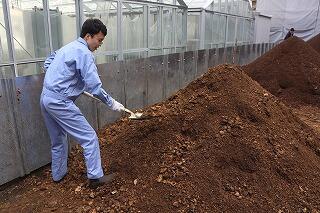 4時間め、2,3年生はファーム(圃場整備)、1年生は廊下清掃をなにわ高等支援学校の生徒達と一緒に行いました。なにわ高等支援学校では毎年実習で様々な野菜などの植物を校内の畑で育てていますが、生育に必要な肥料は、とても質の良い有機肥料で、先生方の指導のもと生徒達が自分達で作っています。3年生のTさん、Iさん、2年生のWさんが他の生徒と一緒に、精を出していました。