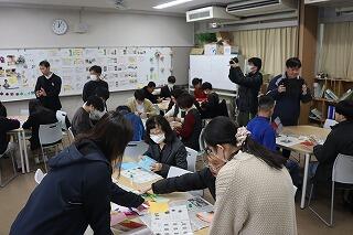 あっちのテーブル、こっちのテーブル、賑やかに楽しんで、紙を折り、お喋りして時間を共に過ごし仲間の輪が広がります。