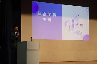 本大会の企画運営は総合学科高校の教頭先生方が中心になって遂行されてきました。開会式に続き、代表して大塚教頭先生から「総合学科」について、概要の説明がありました。