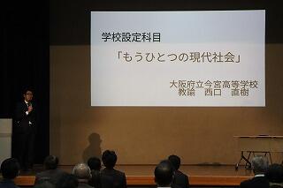 そして、箕面東高校、豊中高校能勢分校、今宮高校、西成高校の順に、各20分間の実践発表が行われました。
