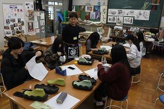 また、美術室では、11月20日(木)に1年生に講演してくださった本校43期卒業生で靴づくりの学校エスペランサ靴学院の学院長をされている大山一哲さんに再度お越しいただき、靴づくりのワークショップをしてくださりました。