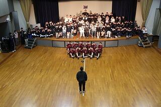 小休止の後、午後2時からは、ダンス部が登場しました。明日、茨木市文化子育て複合施設おにクル(大阪)にて開催される「Dance Drill All Japan Competition 2025 WEST Dance Challenge Cup」に本校ダンス部2年生11人全員が出場します。