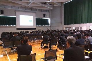 続いて「未来を創る総合学科」~多様な価値観との出会い、新しい時代の学びの創造~を大会スローガンに、開会行事が行われました。私は近畿地区会長として冒頭に挨拶しました。来賓の祝辞のあと、3校の生徒による実践発表が行われました。どの発表も総合学科ならではの学びの中で、生徒達が主体的に取り組み、地域や全国に発信し、キラキラと輝いている姿を観ました。昨日、本校で卒業生の山本さんが2年生に語られていた「好きなことを極める」のことばと重なりました。総合学科はそれができる学校です。