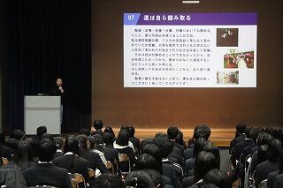 「熱意に勝る才能はない」「勉強・友情・恋愛・仕事、何事においても諦めないこと、周りや自分を信じることが大切」と関口さんは話されました。多くの生徒に刺さることばだったと感じました。