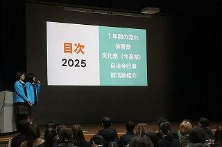 部活動総代の2人も、水球部、野球部、軽音フォーク部、能楽部の紹介を分かりやすくしてくれました。とても上手なので、来年度は全て生徒に話してもらおうかと思いました。