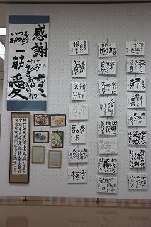 書画部の部員さんの作品の他、「書道Ⅰ」や「HL書道」履修者の授業作品など、生徒の思いで溢れたいろいろなことばが、それぞれ個性豊かな字体で生き生きと表現されていました。