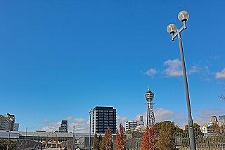 見学を終えて学校へ向かいました。通天閣がよく見えます。もうすぐ春ですね。