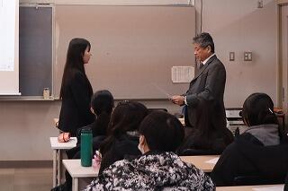 はじめに、今日から1年の任期で、運動部と文化部の総代表の認証式を行いました。運動部総代は女子バレーボール部N.M.さん、文化部総代は軽音フォーク部N.A.さんです。よろしくお願いします。