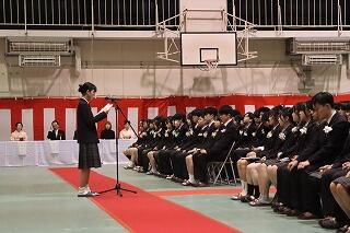 次に生徒自治会長の1年6組髙橋さんは送辞を述べました。清々溌溂と堂々としていてとても立派でした。言葉の一つ一つに触れ、卒業生の皆さんの感慨も一入のことだったでしょう。