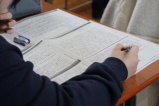 4時間め、「現代文」の講習をチラリと覗くと、教室いっぱいに生徒達が関関同立の入試問題を熱心に解いていました。いよいよ3年生、大学進学をめざす生徒達の受験勉強が始まっています。