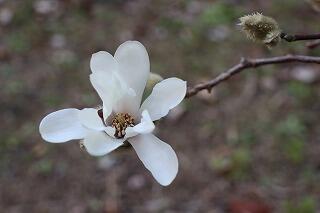 シデコブシはひとまわり大きな花をつけるコブシの仲間で、モクレンも同じ仲間になります。花をよく見ると、花弁の1枚1枚が離れてらせんを描くようについていて、現存するもっとも原始的な被子植物の仲間だと言われています。