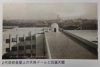 上は「今宮史記-百年の歩み-」(今宮高校創立百周年記念誌)から拝借した旧校舎の写真です。竣工は昭和8年、当時の鉄筋コンクリート造りの建造物としてはとても洒落たデザインで屋上にドームが見えますね。