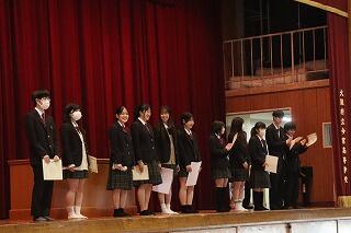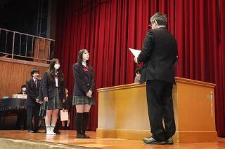 続いて表彰伝達を行いました。賞状を渡した部活動は次のとおりです。