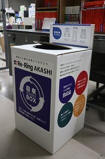 と、標準服でいっぱいになったリサイクルボックスを見せてくれました。いただいた標準服は制服業者を通して新たな布地に生まれ変わります。
