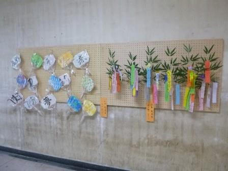 「ものづくり探求(機械編)」の生徒が、エンパワメントルーム前に作品展示スペースを作りました。 まずは位置を決めて枠の取り付け 有孔ボードを固定していきます。 有孔ボードは廃校の学校から譲り受けたものを再利用しています。 書道の作品展示の様子。もうすぐ七夕ですね!