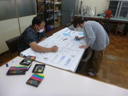 校内で初任者の先生が研修の一環で、オンラインで使う背景のシートを作ってくれました!さっそく、夏休み前後の集会で使ってみようと思います。 パソコンでデザインし、プリントします。ポスターカラーで色を塗っていきます。 完成です!一匹だけ、後ろ姿のイズゾー君がいますよ、分かるかな(笑)