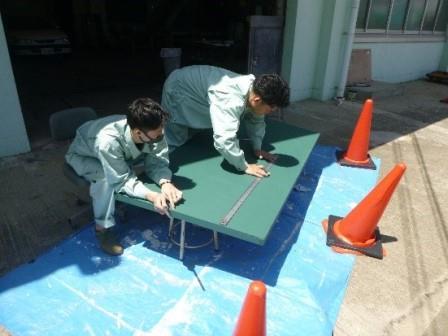 「ものづくり探求(機械編)」の生徒が、野球部から依頼のあったスコアボードをつくりました。今年は野球部も試合に出るのでぜひ活躍してほしいです! 廃材を利用して色を塗っていきます。 線の部分をマスキングして白スプレーで塗装していきます。 得点プレートもつくります。 土台に固定して完成です。 試合もがんばってください!