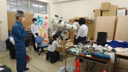 本校の学校歯科医さんのご厚意で、いただいた天体望遠鏡を整備・調整しています。 まず、鏡筒と赤道儀のさびや汚れを丁寧に落とします。 生徒会のメンバーで協力して磨きます。とても根気のいる作業です。 次に、テクノボランティアに天体望遠鏡を載せる台車を製作してもらいました。 台車があれば、天体望遠鏡を、よく見える観測場所に自由に移動することができます。 さっそく、生徒会のメンバーで念入りに磨...