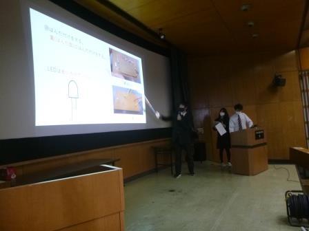 本日3限~4限を使い、視聴覚教室にて3年選択科目「ものづくり探究」の成果発表会を行いました。 機械セットの生徒30名と電気セットの生徒10名が合同で発表しました。 発表は「木工」「溶接」「レーザー加工」「プログラミング」「テクノボランティア」「熱伝導の研究」「電子工作」の7グループです。1年間の取り組みの成果を、プレゼン形式で発表しました。 後は作品展示スペースです。生徒たちは、自分...