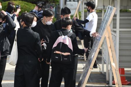 今日は令和4年度特別入学者選抜 合格者発表が行われました。 合格発表は数か所に分かれて行われます。 発表前は待機所でみんな待っています。 自分の番号はあったでしょうか? 合格者の皆さん、これから始まる高校生活を大切にしてください。 新しい3年間のスタートです!