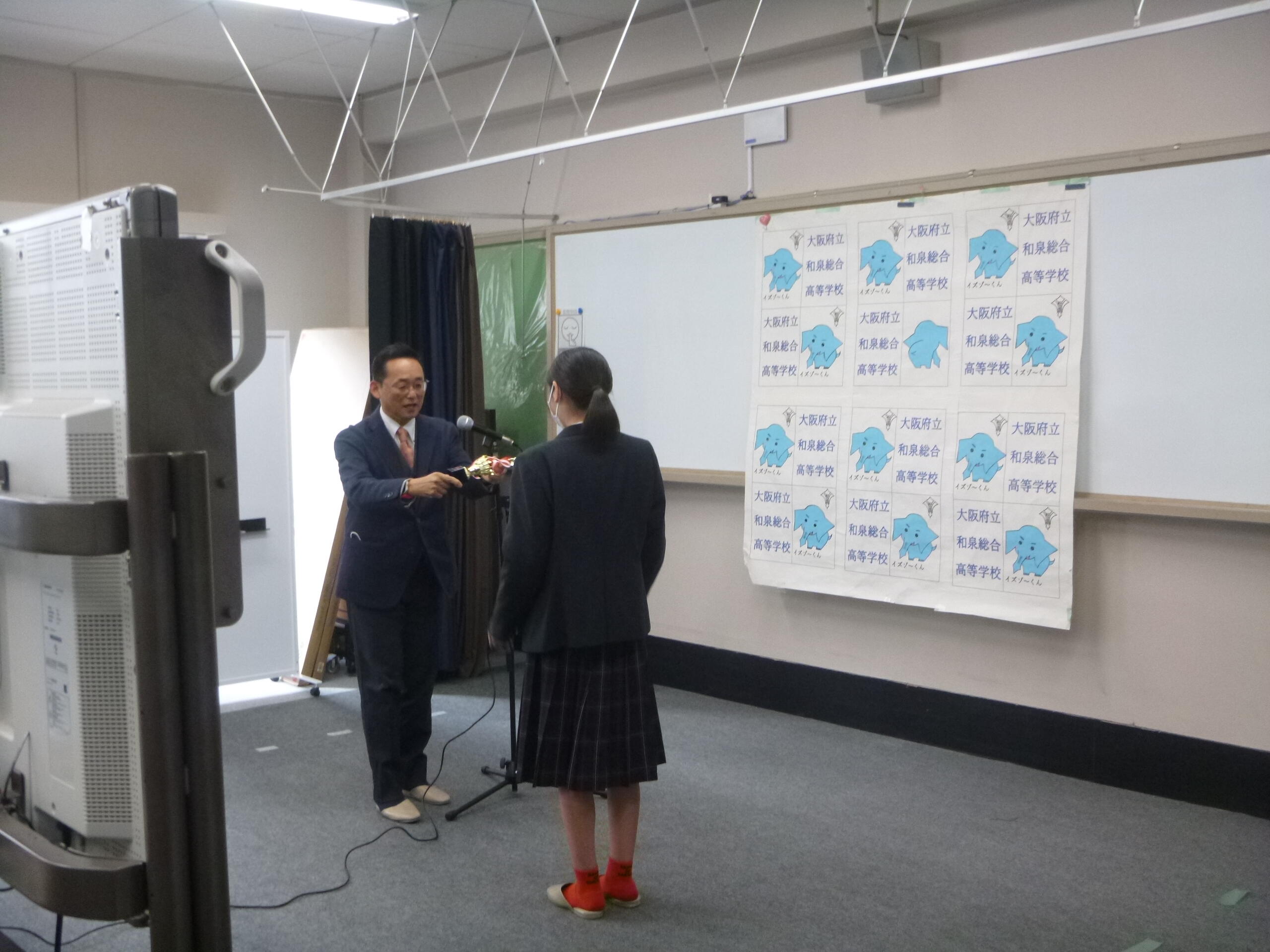 ↑大阪府高等学校書道コンクールに入賞した生徒が表彰されました。