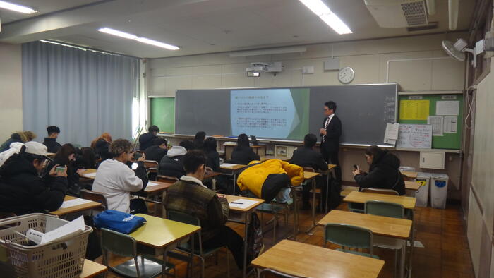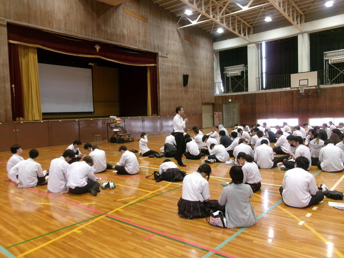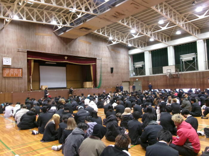 本日午後、大阪府教育委員会と連携している「HASSHADAI social」の代表勝山さんが 来校され、1年生対象に2時間体育館で講演を行ってくれました!勝山さんは高校を 中退し、19歳で人生を変える機会に会い、以後全国を飛び回って講演活動をされています。 少年院の様子や、ヤンキーインターンのお話、やりたいことを見つける方法など、自分の 経験をもとに2時間、熱く語ってくれました!寒い中本当にありが...