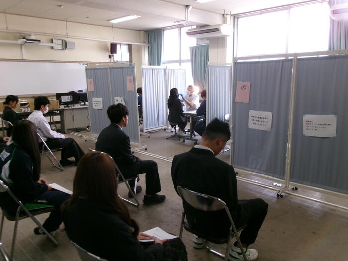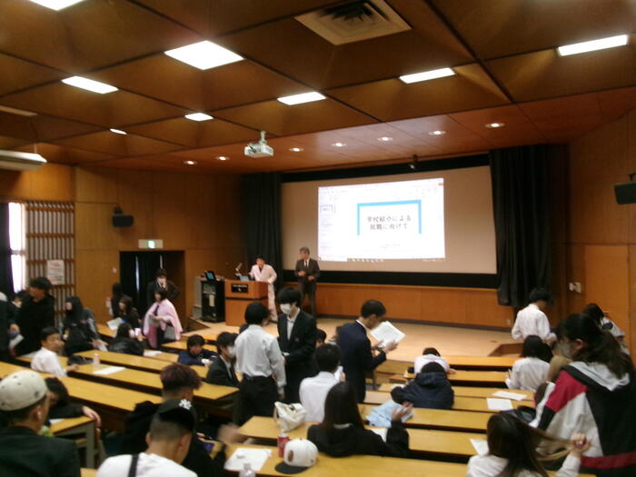本日の総学&LHRの時間、3年生対象に視聴覚教室にて進路説明会が 行われました。はじめの全体説明の後、進学と就職に分かれてより 詳しい説明を受けました。保護者向けには、5/17に行われる予定です。