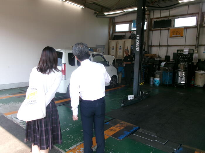 毎年、夏の恒例「応募前職場見学会」真っ盛りです! (生徒が希望する会社に事前に見学にいくアレです) 筆者も本日、女子生徒1名と某カー用品店に見学いってきました。 暑い中、店の方、そして見学生徒、おつかれさまでした!!