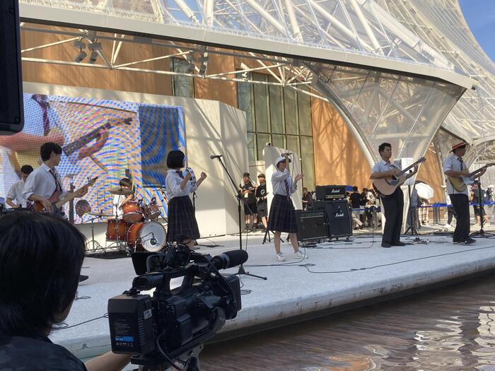 8月17日(日)に大阪・関西万博会場内 大阪ヘルスケアパビリオン前 リボーンステージにて行われた、「府立学校万博学園祭」に出演しました。演奏曲はGoose houseで「ひかるなら」を演奏してきました。他にも多数の府立学校が演奏し、本校の「シャイニング」も会場をより一層盛り上げていました。当日は大変多くの観客がいる前で堂々と演奏しており、生徒達の日ごろの取り組みの成果が見られました。https:/...