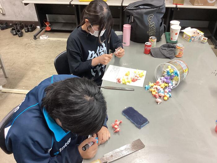 ものづくり系列の特徴的な授業として、3年生「ものづくり探究」があります。 3年間のものづくり技術の集大成のようなもので、1年間かけて卒業成果物を つくります。今年は「テクノ工房」「レザークラフト」「防災用品づくり」 「バギーカートの製作」「3D CADを用いたものづくり」の5つです! どのテーマも非常に楽しそうです!!また様子をアップしていきます!
