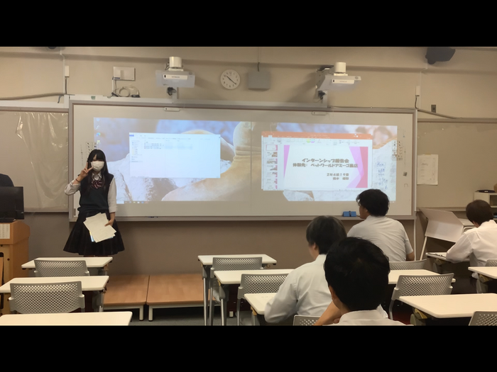 本日午前中、エンパワメントルームにて2年生4名の生徒たちがインターン シップについて報告しました。体験先は以下のとおりです。 小島くん「隆電設工業」西尾くん「ヤトゴルフ泉北」 橋本さん「ペットショップアミーゴ」「池上わかば子供園」 森田さん「池上わかば子供園」 どの発表もすばらしかったです、今後の進路に期待です、お疲れ様でした!!