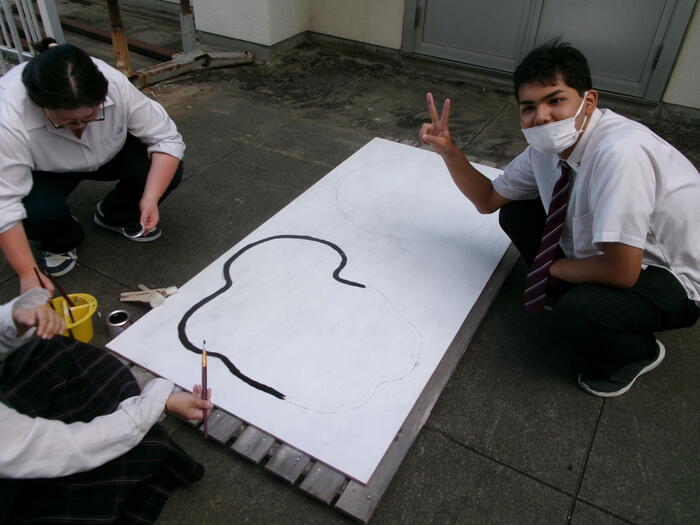 なさんは登校するとき校舎に入る階段の所に和泉総合キャラクター 「イズゾ~」がいるのをご存じでしたか?雨風にさらされ薄くなっていたのを 「ものづくり探究」のテクノ工房班が新調してくれました、要チェック!! (実はこの後夕方イズソーでは停電が起こります・・・) ↑以前の様子 ↑作業の様子