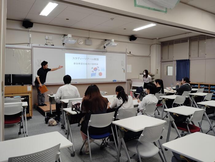9/22、本校の国際交流事業の一環である「韓国スタディツアー」の生徒向け説明会を実施しました。 生徒たちはメモを取りながら真剣に担当教員の説明を聞いていました。今回はどんなスタディツアーになるのか楽しみですね。説明会に参加できなかった生徒のみなさんも、興味があれば担当教員まで問い合わせてみてください。
