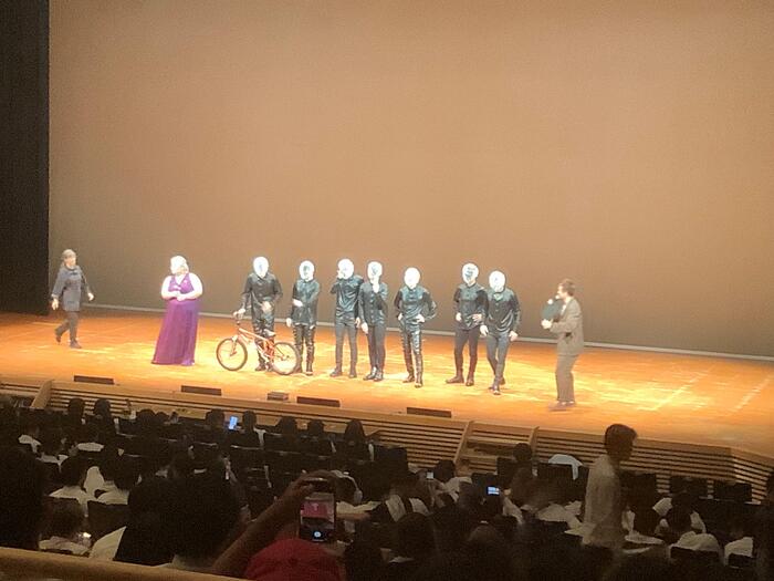 本日は高石アプラホールにて「芸術鑑賞」です! 今年の出演者はまず第Ⅰ部として声楽歌手の「しおたん」さん! すごい声量と歌唱力で圧倒されました。YouTubeも要チェックです。 第Ⅱ部の「マスクドショーマン」も圧巻のパフォーマンス!ダンスや ボール演技、BMXに、、、最後まで楽しませてくれました。