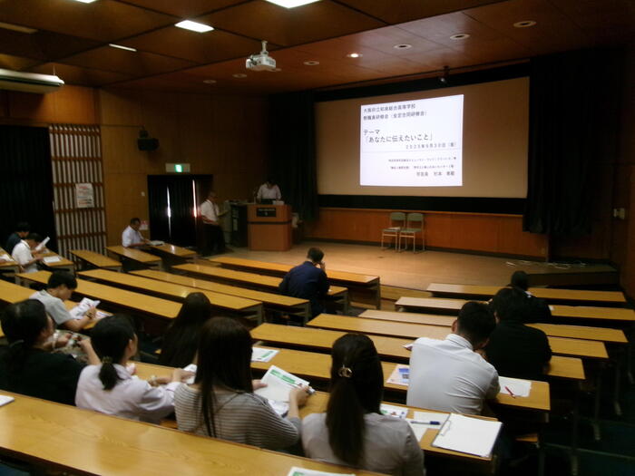 本日放課後、全定合同で人権関連の教職員研修が行われました。 毎年行われるもので、今年は講演の講師として堺にある人権資料館 から杉本さまにお越しいただきました。自身の体験も踏まえた圧倒的 な内容で、非常に有意義な研修になりました、ありがとうございました。
