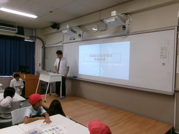 本日午後、お隣の池上小学校から4年生の児童20名が本校に来校されました。 今回は和泉総合の3年生情報セットの生徒5名が先生役となり、プログラミング について教える授業を行いました。授業で使うプリント、パワーポイントのスライド など、すべてを生徒たちが一から準備しました!よくがんばったと思います、おつかれさま でした。