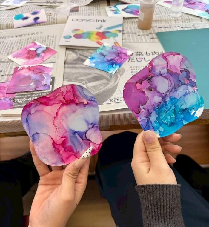 保育セットの選択者を対象に、アーティストを招いてアルコールインクアートの 授業を実施しました。子供の表現を広げるアート体験として、生徒たちはそれぞれ 好きな色を選び、集中して制作に取り組んでいました。インクのにじみや広がりに よって生まれる偶然性を楽しみながら、世界に一つだけの作品が完成しました。 出来上がったアートは、アクリルのコースターとして持ち帰り、表現する楽しさと ともに学びを深める時間と...