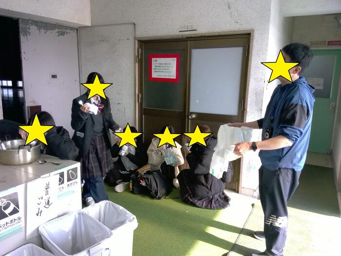 令和8年1月16日(金)の地域活動において、防災意識を高めることを目的に、備蓄品を活用した防災訓練を行いました。 訓練では、災害発生時を想定し、身近な備蓄品をどのように使うかについて学習しました。 湯せん調理後の水については、普段であれば捨ててしまいがちですが、災害時には貴重な生活用水となるため、手洗いや清掃などに再利用できることを確認しました。 また、おむつの活用方法についても学びました。 生徒...