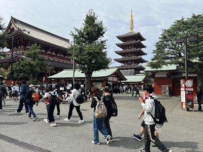 ホテルを出発し、20分ほどで浅草に到着しました。