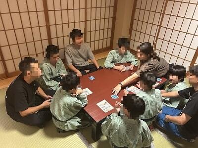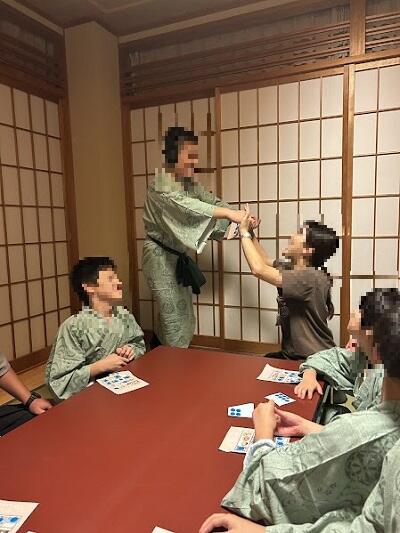 お風呂に入った後は、部屋でビンゴゲームをして楽しい